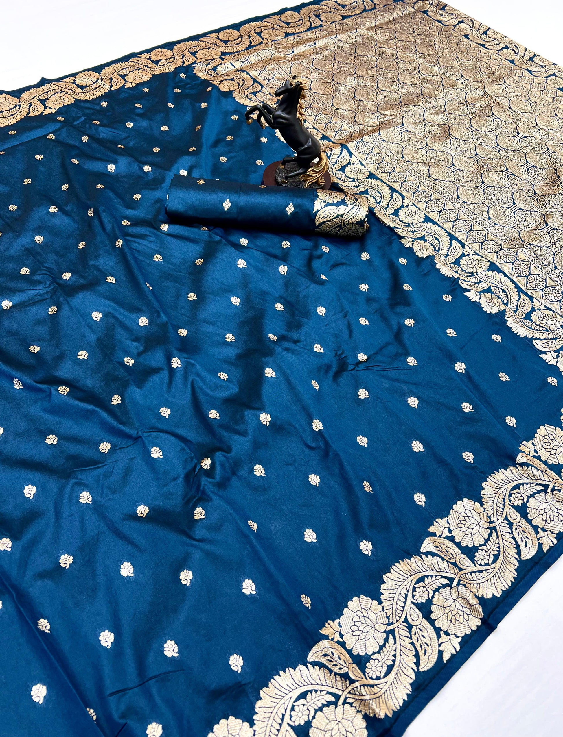 Saree :- Soft And pure banarasi silk saree with self weaving design all over the saree & zari weaving Rich pallu with zari weaving unique border & heavy rich Pallu.